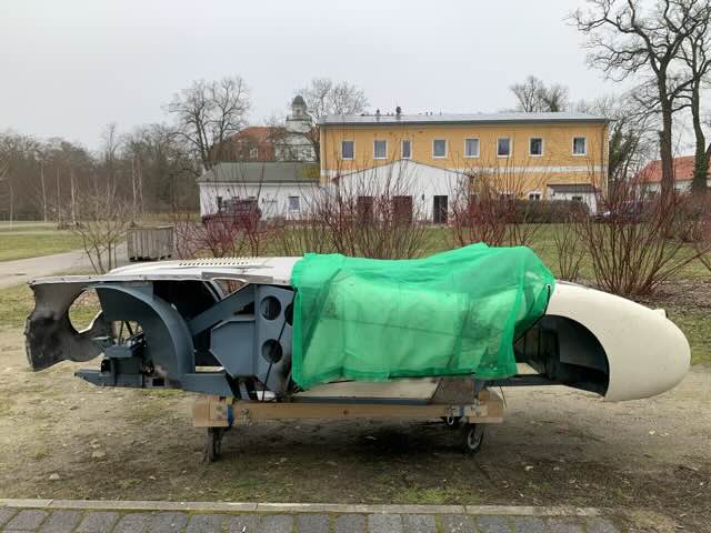 Wir haben einen neuen Betrieb René Große für die Karosseriearbeiten gefunden. Der Betrieb ist zwar etwas weiter weg, aber immer noch nah genug, um auch kurzfristig mal vorbeizuschauen. Wir haben das Chassis schon dort hingebracht, das ging dank des Gestells auch sehr gut.