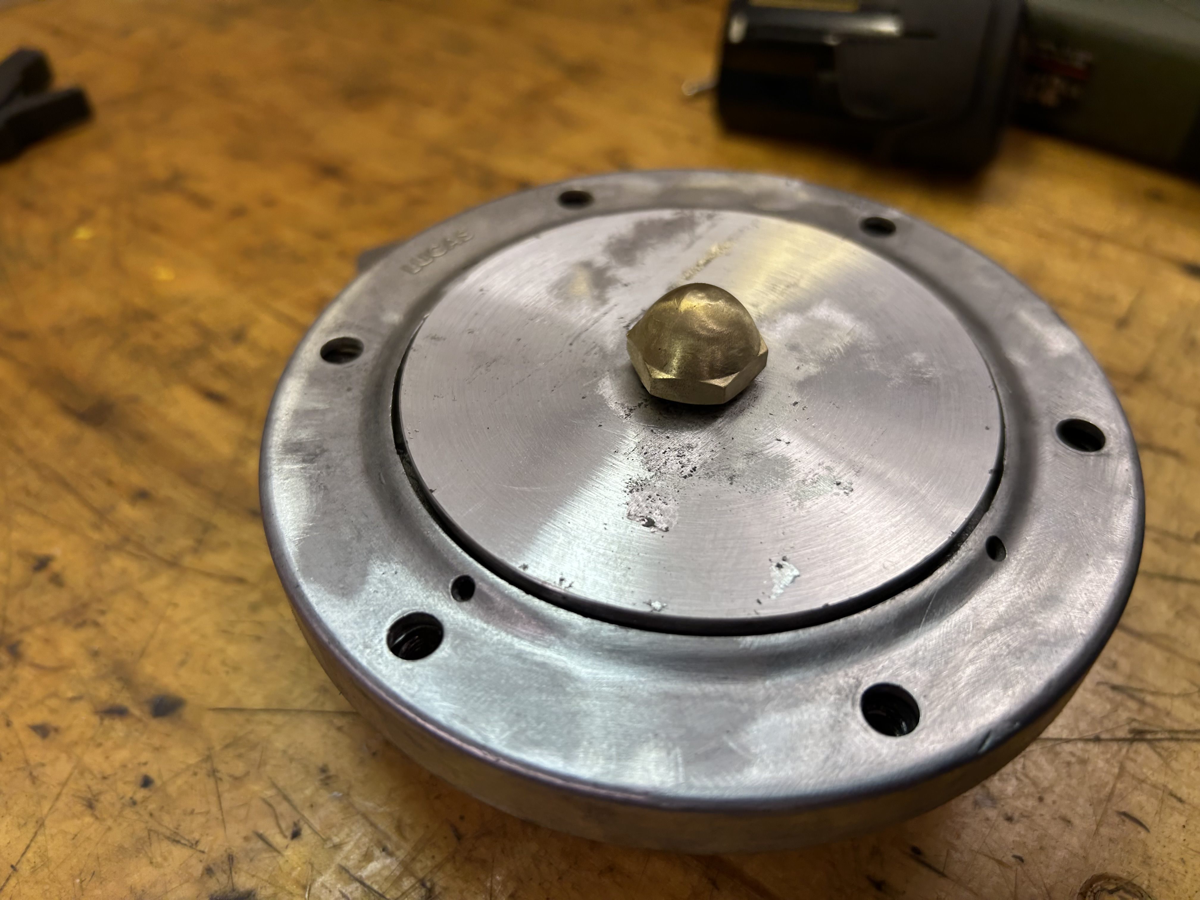 Beide Hupen wurden zur Prüfung zerlegt. Das Gehäuse, Membran und Rahmen wurden entrostet, anschießend nach Prüfung neu lackiert.