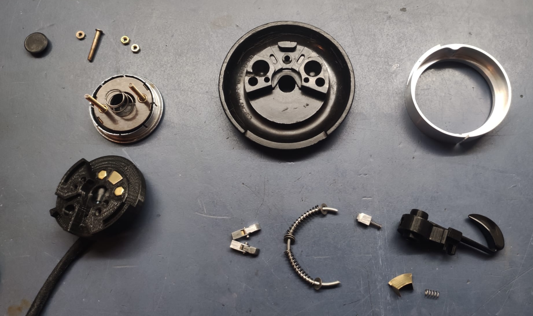 Mein Sohn Felix hat sich der Sache angenommen und auf der Basis der noch vorhandenen Teile und Abbildungen, ein Re-Engineering durchgeführt. Die fehlenden Bestandteile wurden neu mittels 3-D-Druck hergestellt. Weitere Bestandteile wurden mit einer 3-D-Fräse erstellt. Es ist Ihm gelungen alle notwendigen Teile zu einer funktionierenden Gesamteinheit zusammenzufügen.