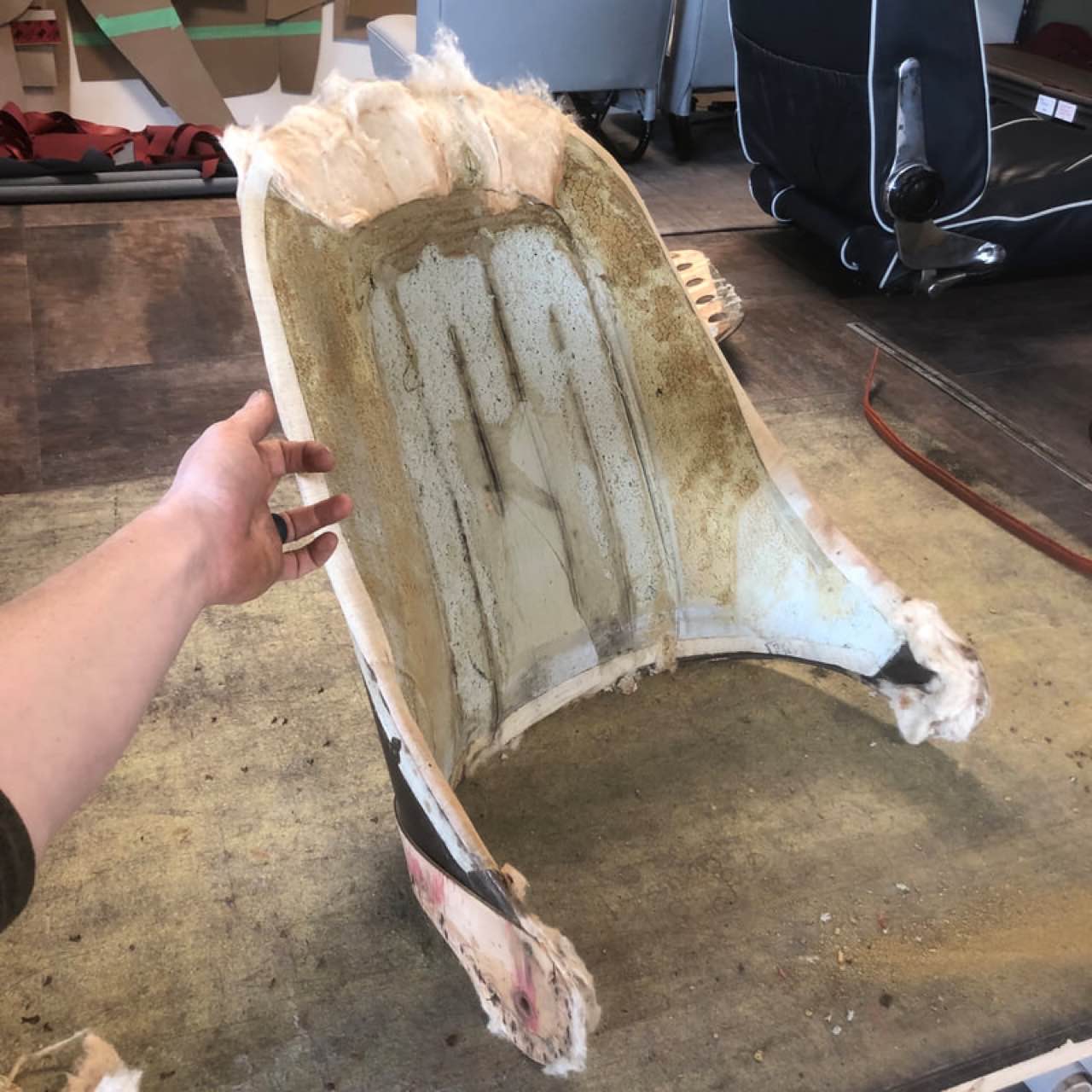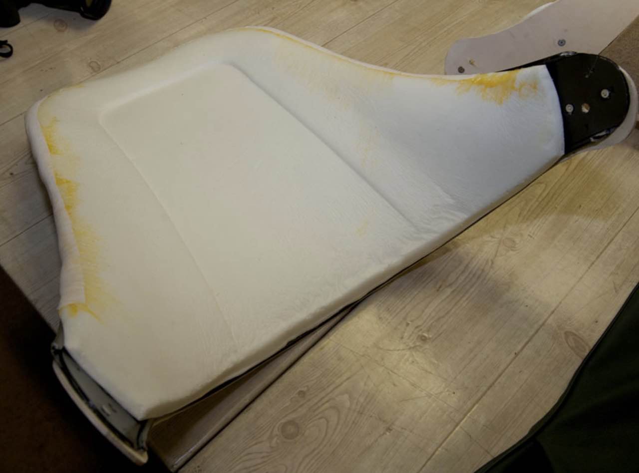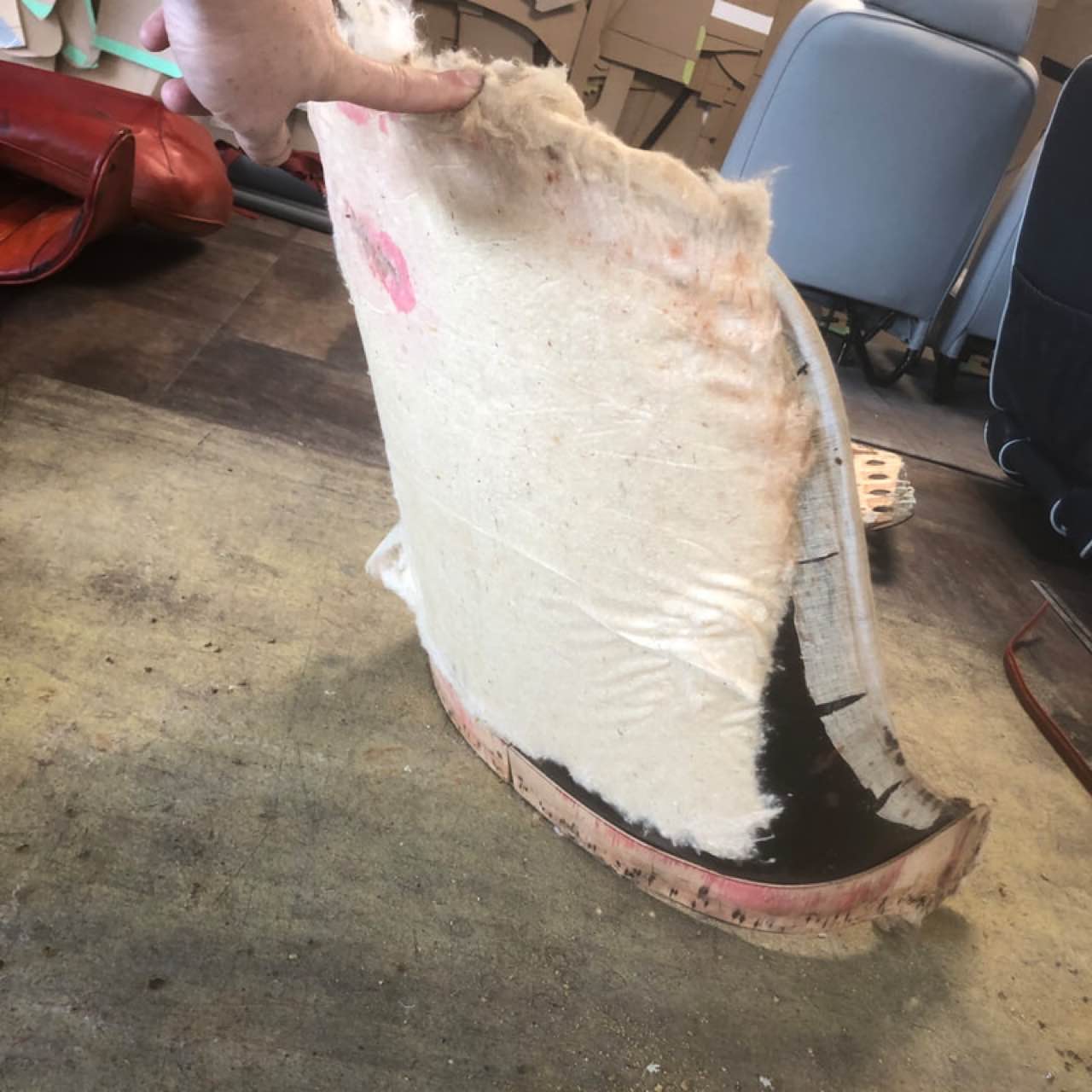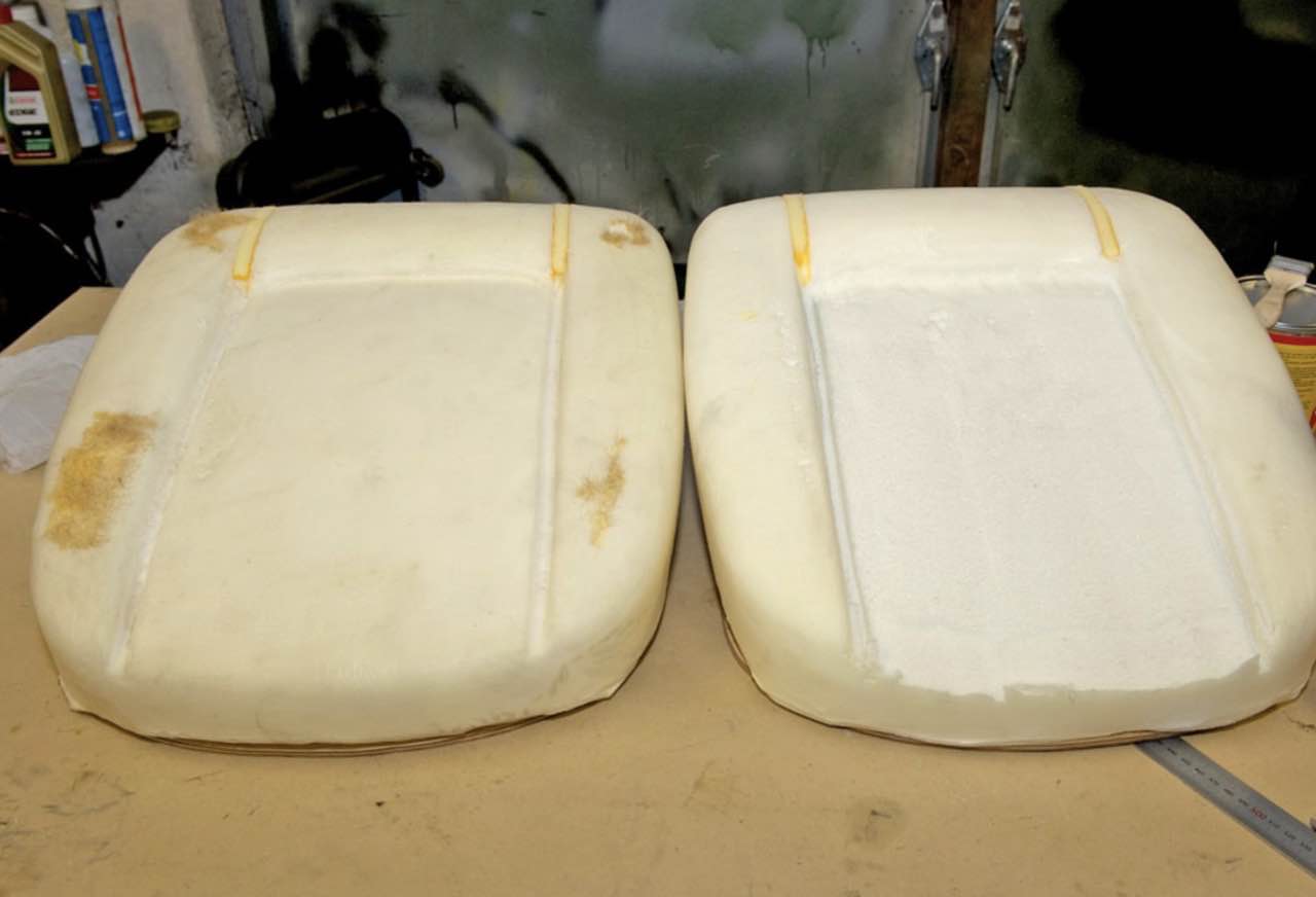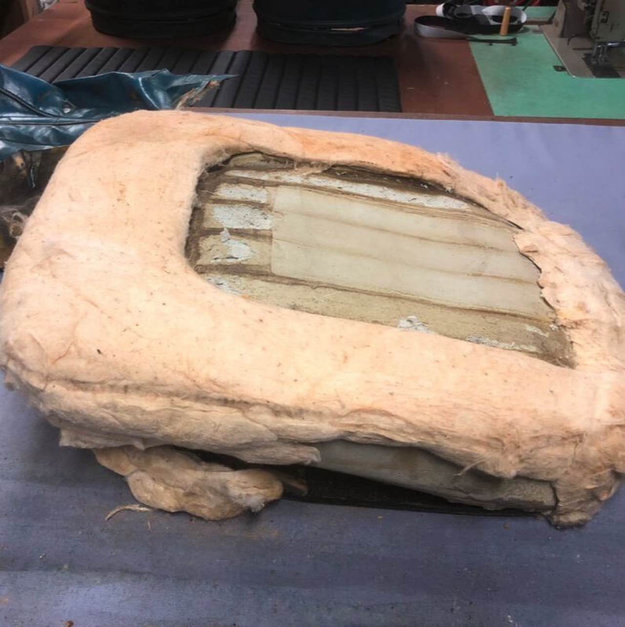 Wir haben damit begonnen, die Sitze aufzubereiten. Die Sitze wurden in der Vergangenheit komplett zerlegt. Der Bezugsstoff konnte nicht mehr verwendet werden, ebenso die Schaumstoffbestandteile.