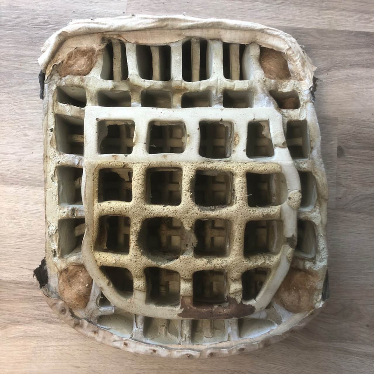 Die Abbildungen zeigen unterschiedliche alte Schaumstoffvarianten die damals verwendet wurden. Leider waren unsere Sitze derart beschädigt das wir diese nicht mehr retten konnten. Auch als Muster waren Sie nicht mehr zu gebrauchen.