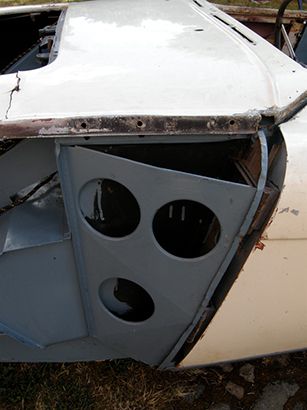 Die Außenbleche sind ebenfalls in einem guten Zustand, alleine das Front-Shroud weist einen Unfallschaden auf. Hier besteht die Hoffnung, dass dieser gerichtet werden kann. Ziel ist es, die Originalbleche unbedingt zu erhalten, da diese schon an das Chassis angepasst sind.