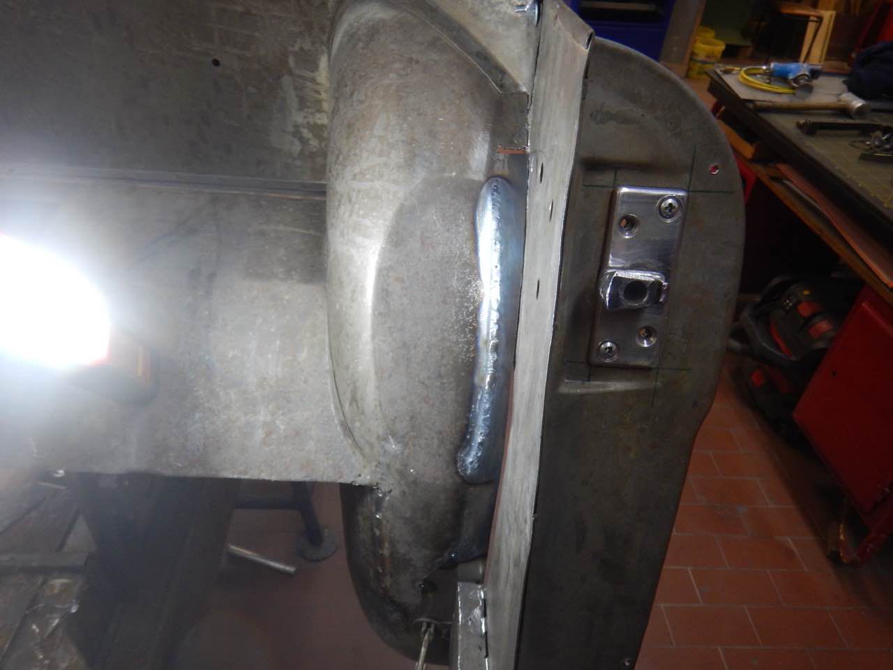 Arbeiten an den beiden hinteren Radläufen, auch hier wurden die Durchrostungen beseitigt.