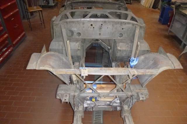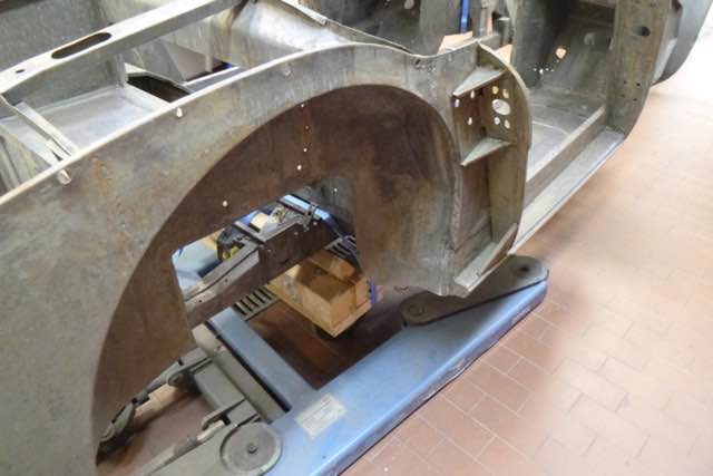 Chassisarbeiten - Teil 1 Der Karosseriebauer hat mit den Arbeiten am Chassis begonnen. Bisher wurden Bleche im Kofferraum und Fußraum überarbeitet. Im Kofferraum gab es einige Stellen, die auf den ersten Blick nicht zu erkennen waren. Aktuell wird an den B-Säulen und Querlenkeraufnahmen vorne...