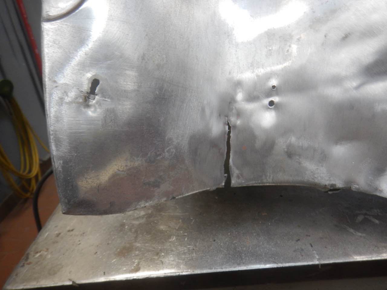 Das Frontshroud ist in keinem guten Zustand. Auf der Fahrerseite ist es im Bereich der Lampentöpfe stark beschädigt. Es wurde jedemenge Spachtel verwendet. Wir haben uns mit dem Restaurierungsbetrieb darauf verständigt nur für die Nase gegen ein Neuteil zu verwenden. Das Neuteil wird in das bestehende Teil eingearbeitet. Damit soll sich der Aufwand verringern.