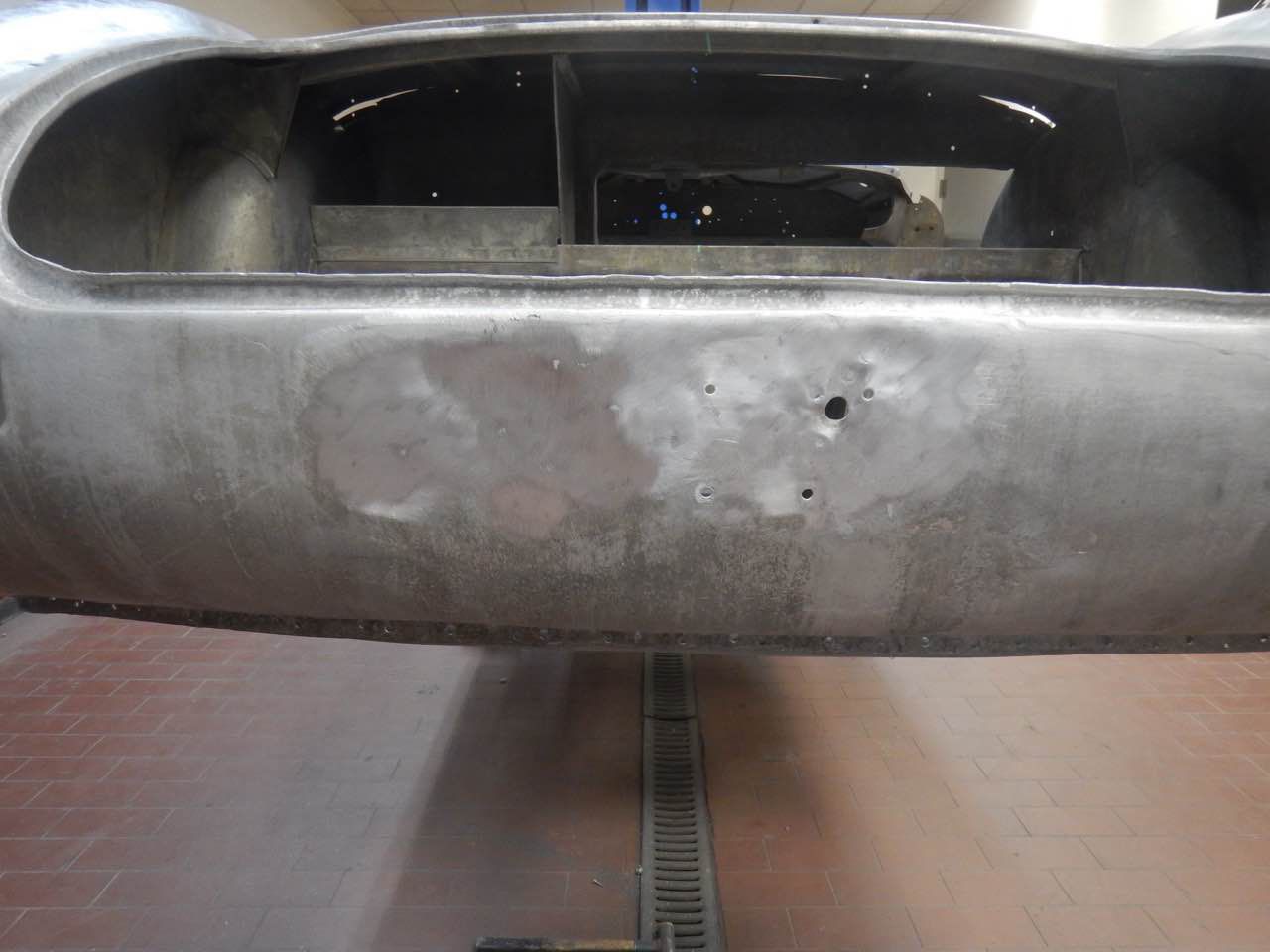 Das Heckshroud ist in einem guten Zustand und wird weiter verwendet. Es muss in einigen Bereichen geglättet werden und alte Löcher werden geschlossen.
