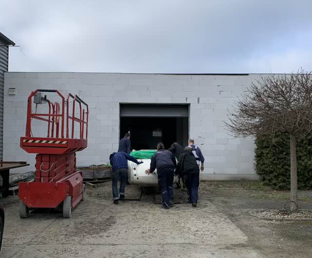 Zurück in Berlin haben wir uns ein Zugfahrzeug und Anhänger geliehen und sind erneut nach Belgien gefahren. Diesmal hat es geklappt.