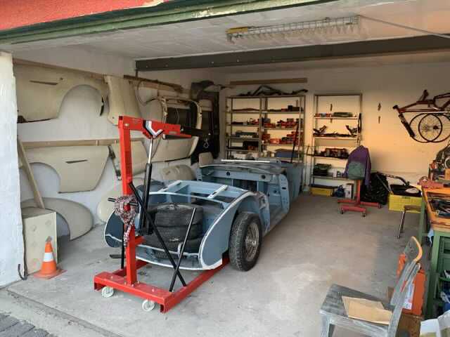 Der Wagen stand lange, ca. 25 Jahre, in unserer Garage in Marienfelde. Nach Marienfelde stand der Austin ca. 2 Jahre in einer nicht besonders guten Garage. Ein Arbeiten war hier nicht möglich. Zum Glück haben wir dann eine sehr geräumige und schön gelegene Garage in Genshagen gefunden. Die Bilder zeigen den Umzug von der Zwischenlösung nach Genshagen.