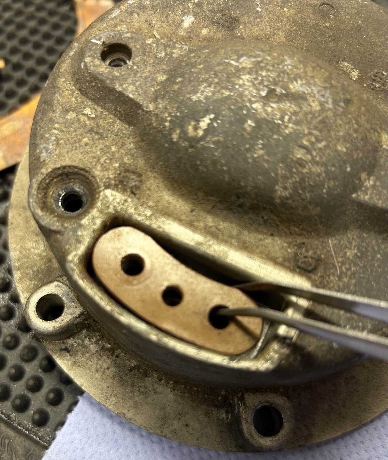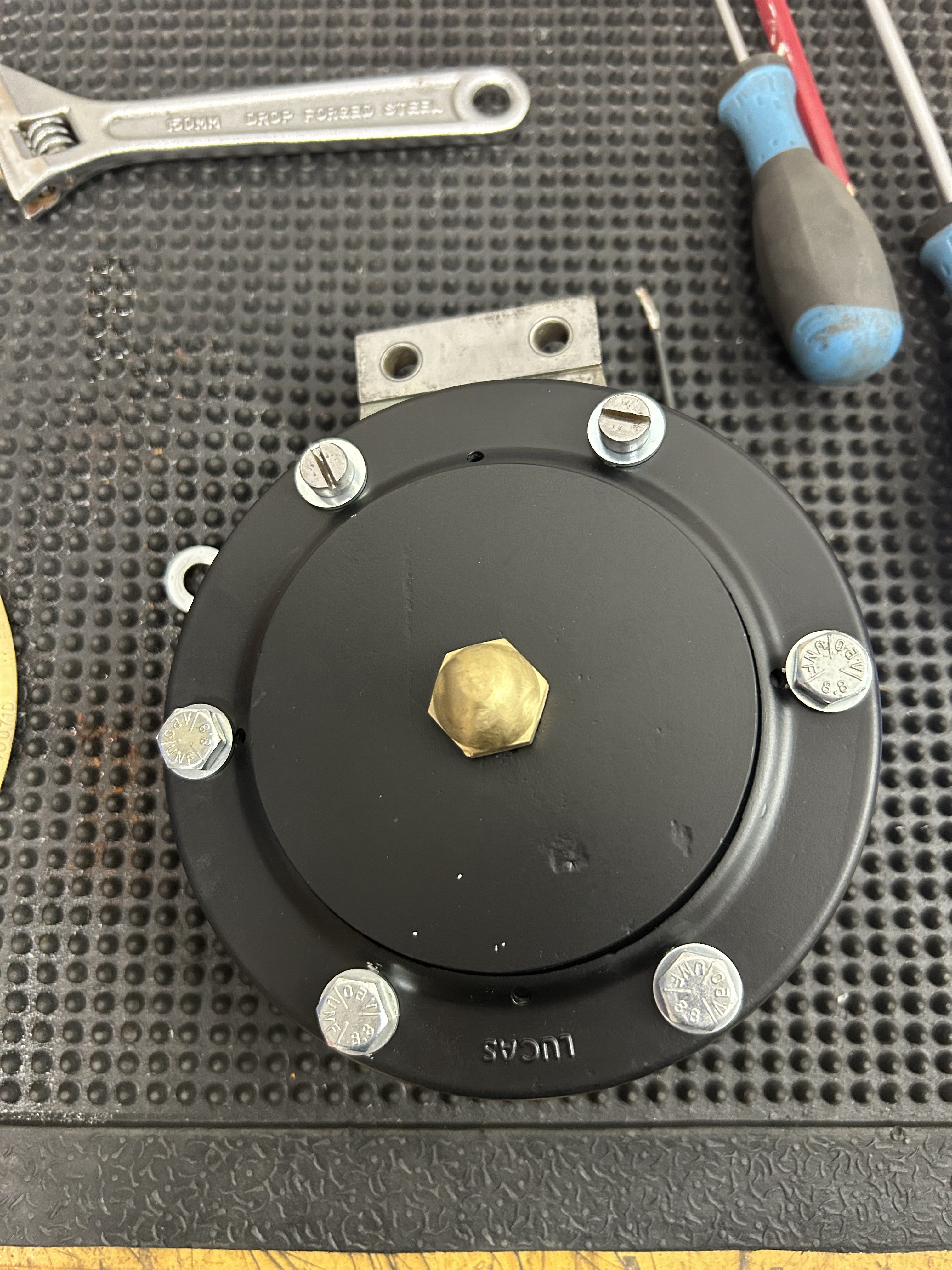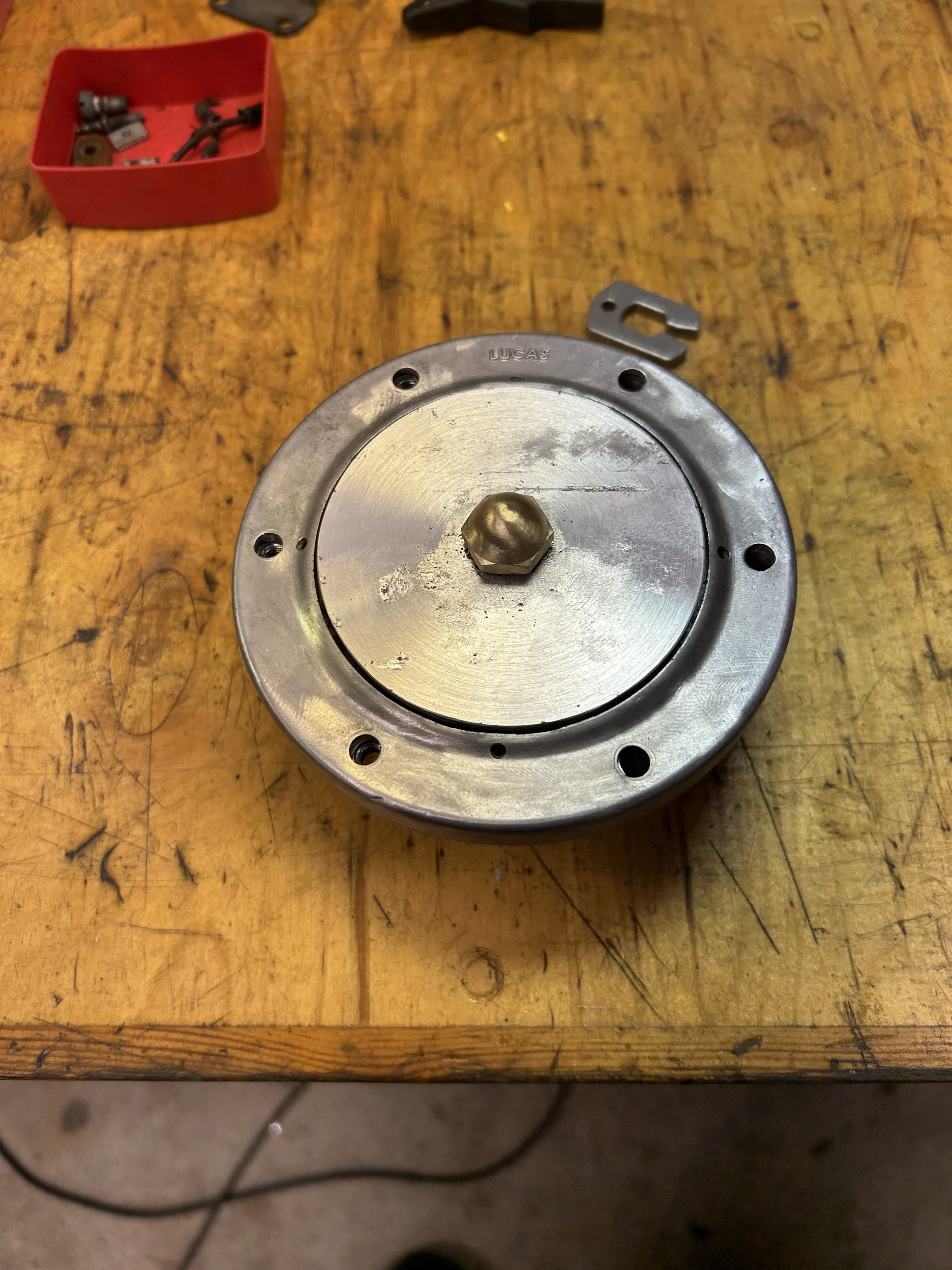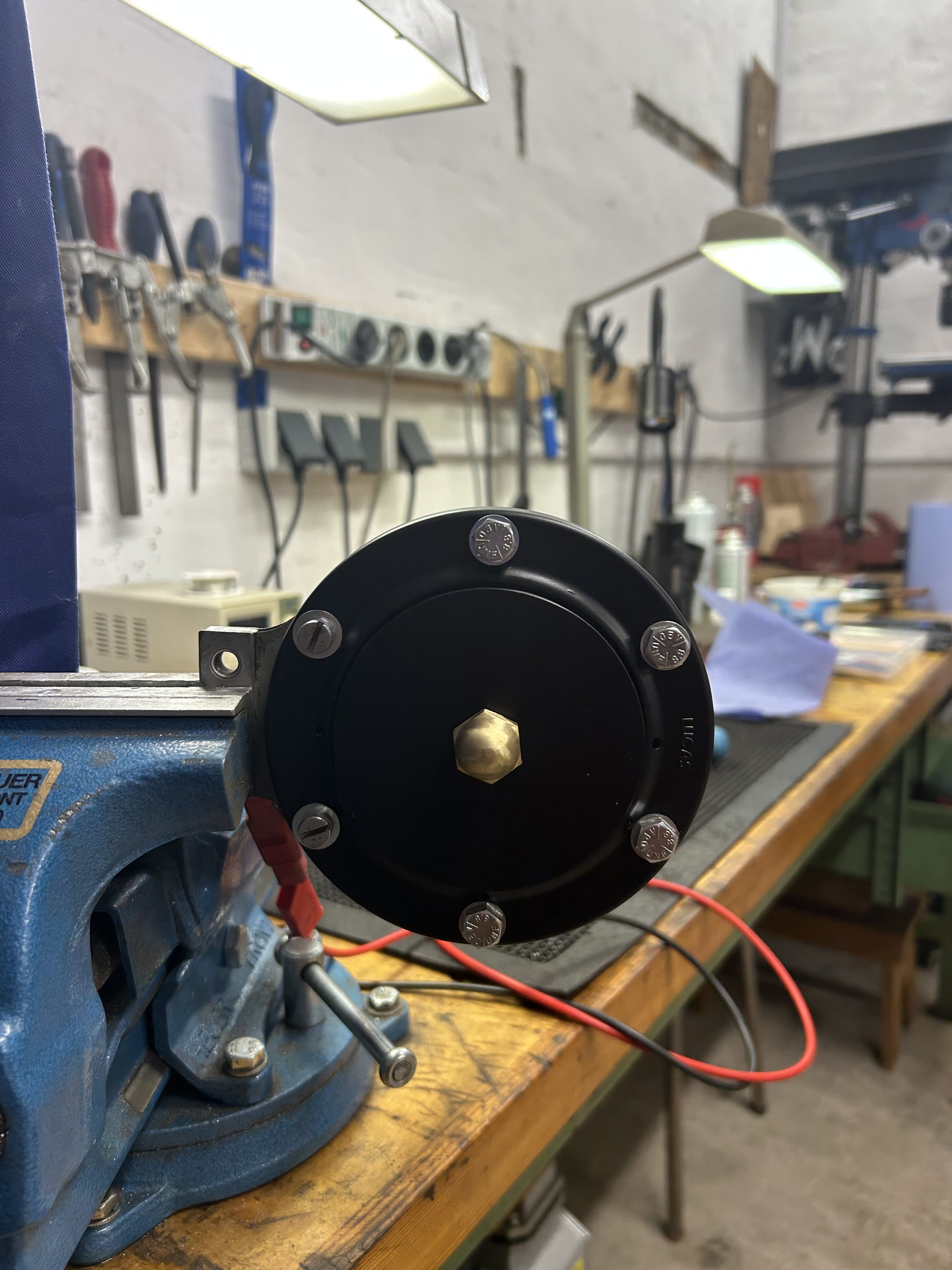Beide Hupen wurden zur Prüfung zerlegt. Das Gehäuse, Membran und Rahmen wurden entrostet, anschießend nach Prüfung neu lackiert.