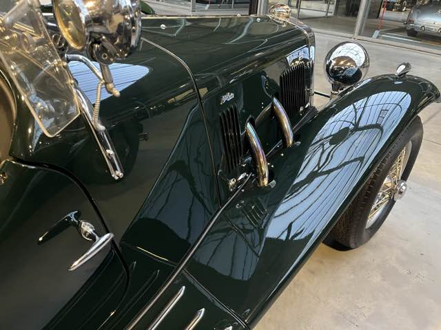 Der Jaguar ist mit einem Lack Glasurit # JAG-602 lackiert. Dieser Lack wurde bei Jaguar von 1947 bis in die Siebziger verwendet. Vergleichbar sind auch die Lacke von Aston Martin oder Morgen. Leider gibt es von Aston Martin und Morgen keine uns zugänglichen Lacknummern.