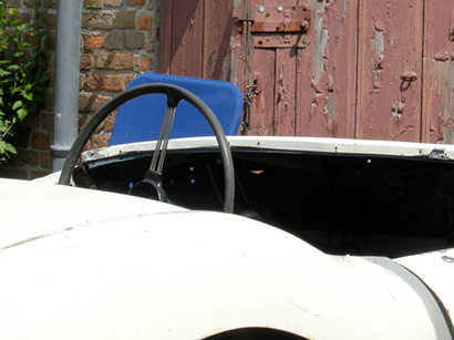 Die Originalfarbe war, wie auf den Bildern zu sehen, Old British White. Hier werden wir in jeden Fall von der Originalität abweichen und Healey Blue oder Ice Blue Metallic verwenden. Alternativ evtl. auch British Racing Green. Mal sehen.