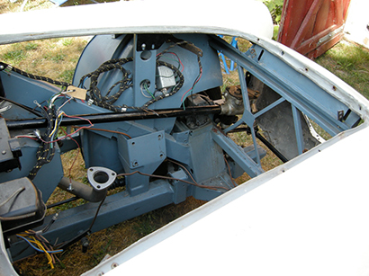 Die Außenbleche sind ebenfalls in einem guten Zustand, alleine das Front-Shroud weist einen Unfallschaden auf. Hier besteht die Hoffnung, dass dieser gerichtet werden kann. Ziel ist es, die Originalbleche unbedingt zu erhalten, da diese schon an das Chassis angepasst sind.