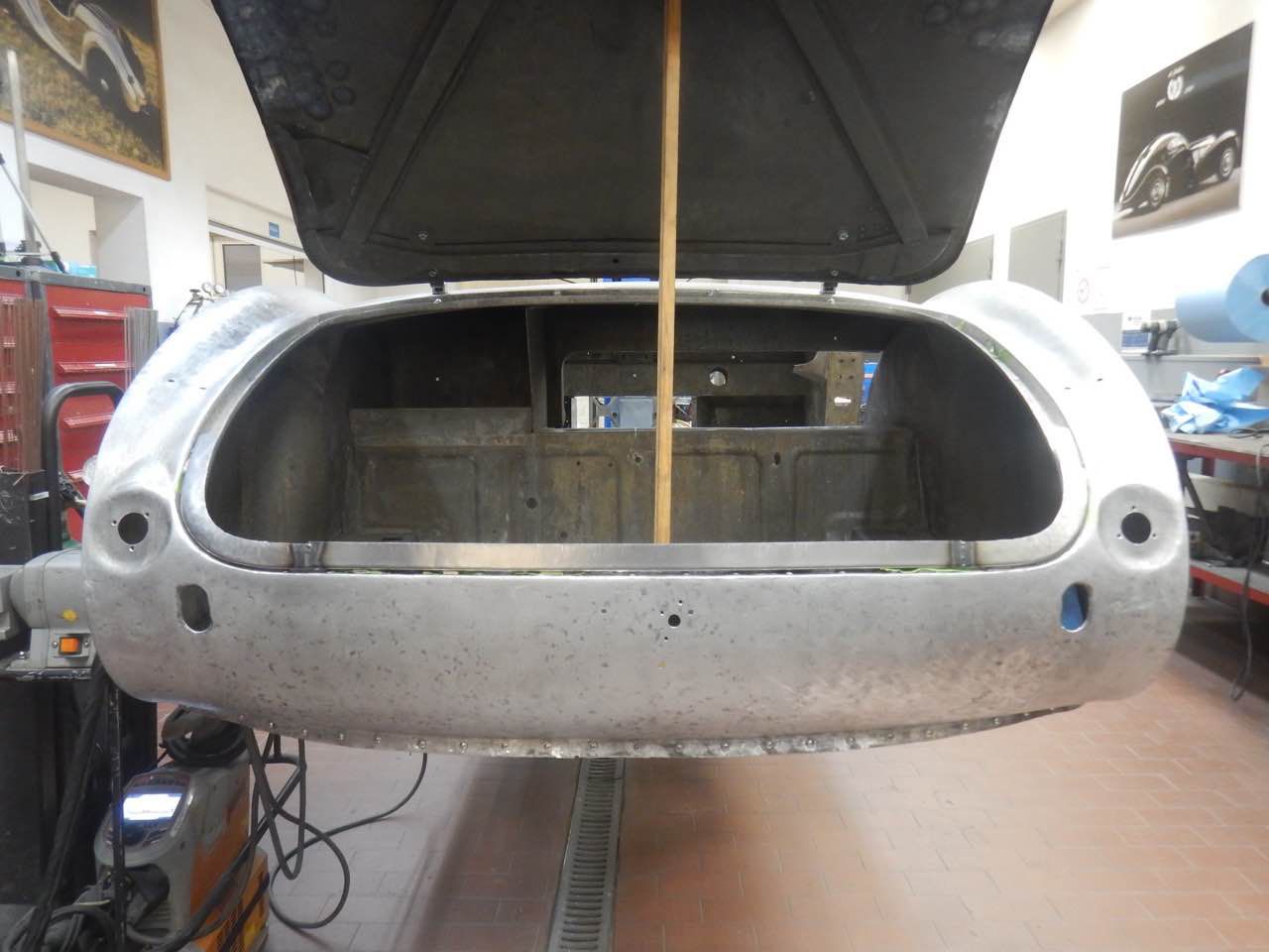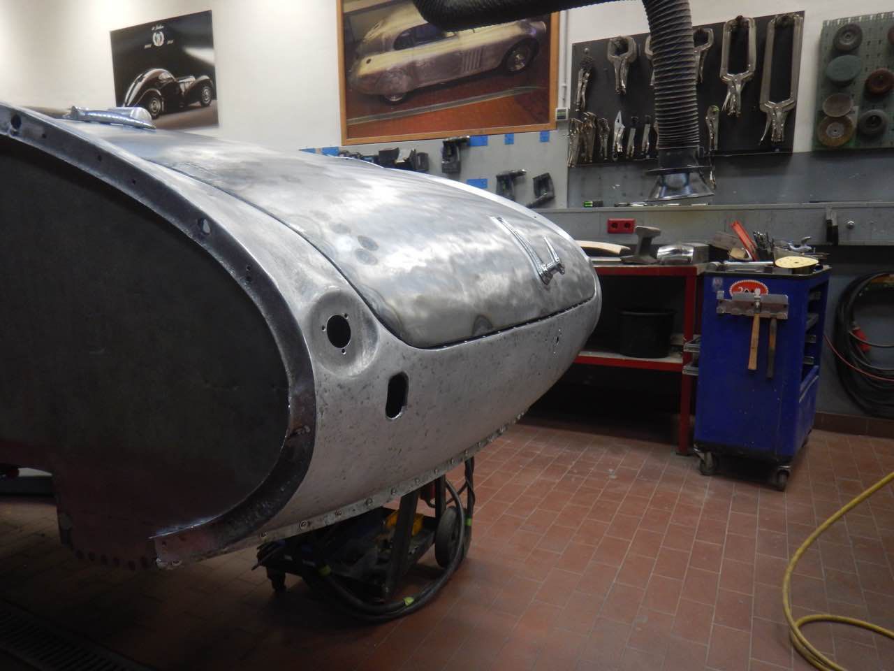 Das Heckshroud sowie der Kofferraumdeckel werden überarbeitet. Die Kofferraumabdeckung passt von den Spaltmassen sowie von der Krümmung im unteren Bereich nicht zu dem Heckshroud. Da das Blech sich nicht mehr gut bearbeiten lässt, wurde der untere Bereich neu geformt und in dem bestehenden Deckel eingesetzt.