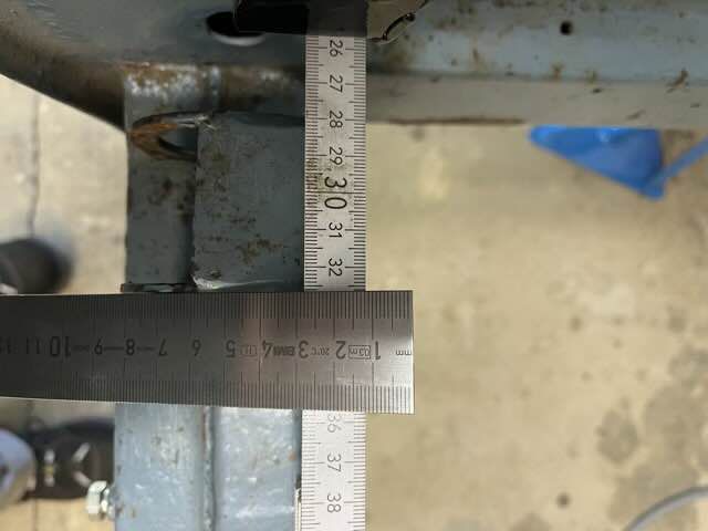 Die vordere, obere Befestigung für den Hebelstoßdämpfer musste repariert werden. Die Hebelstoßdämpfer werden mit vier Schrauben auf einer Grundplatte befestigt. Die Muttern sind unter der Grundplatte verschweißt, hier hatte sich eine Mutter gelöst.
