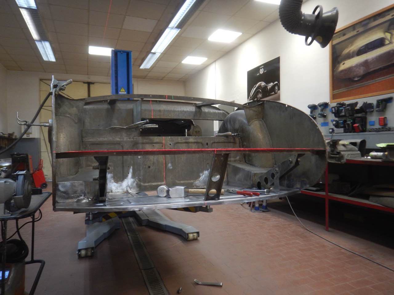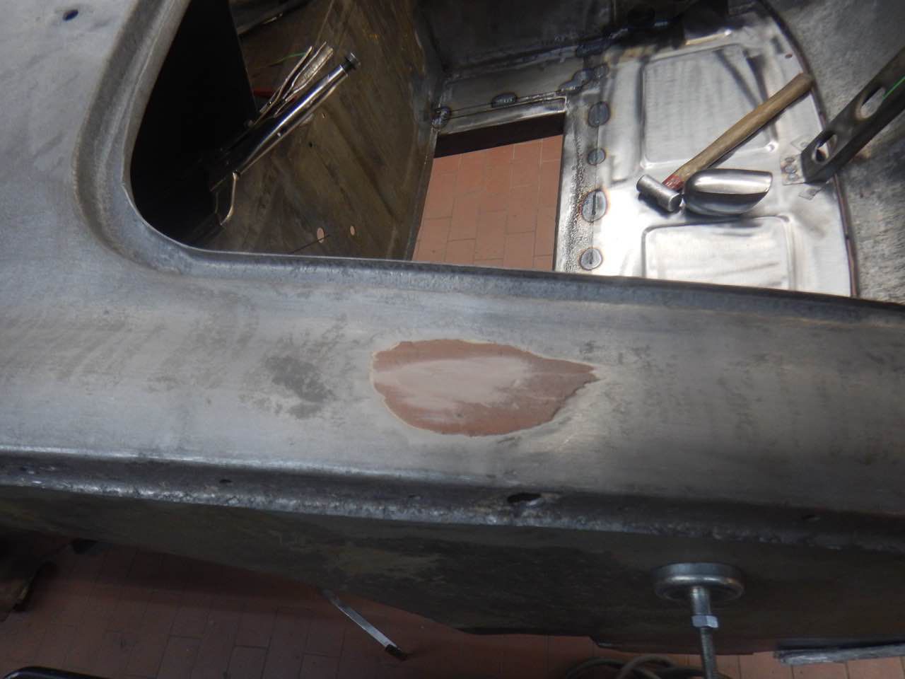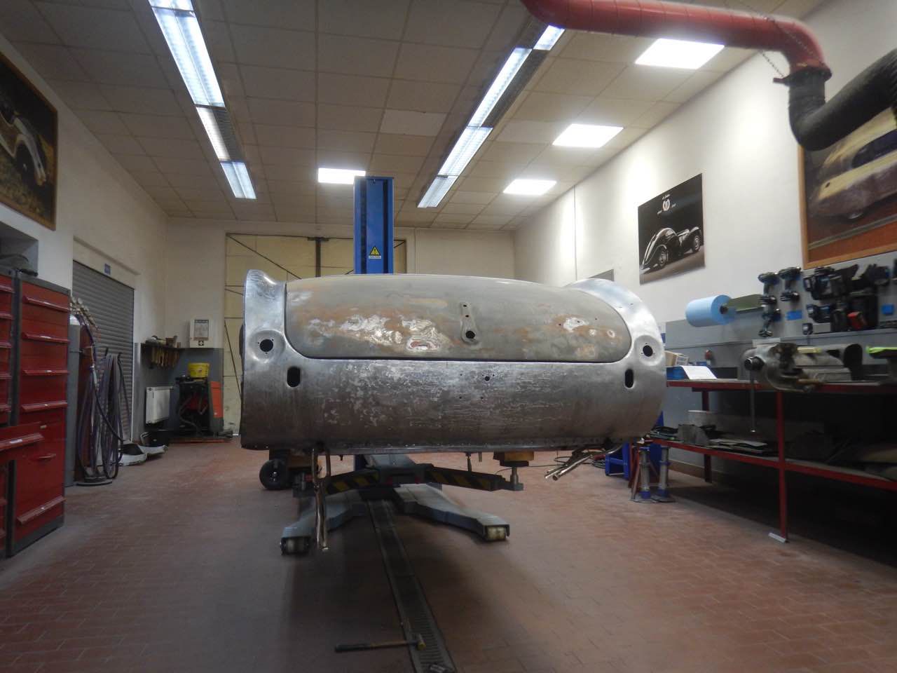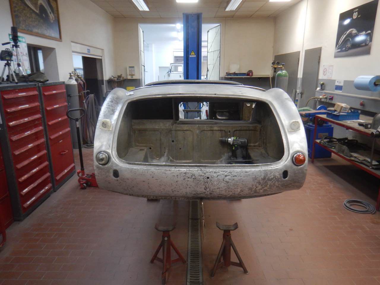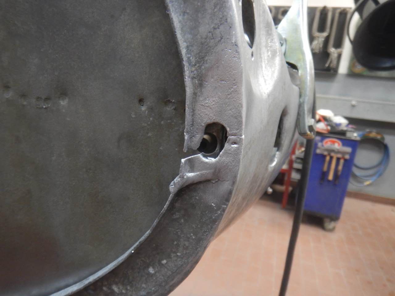 Das Heckshroud ist in einem guten Zustand und wird weiter verwendet. Es muss in einigen Bereichen geglättet werden und alte Löcher werden geschlossen.