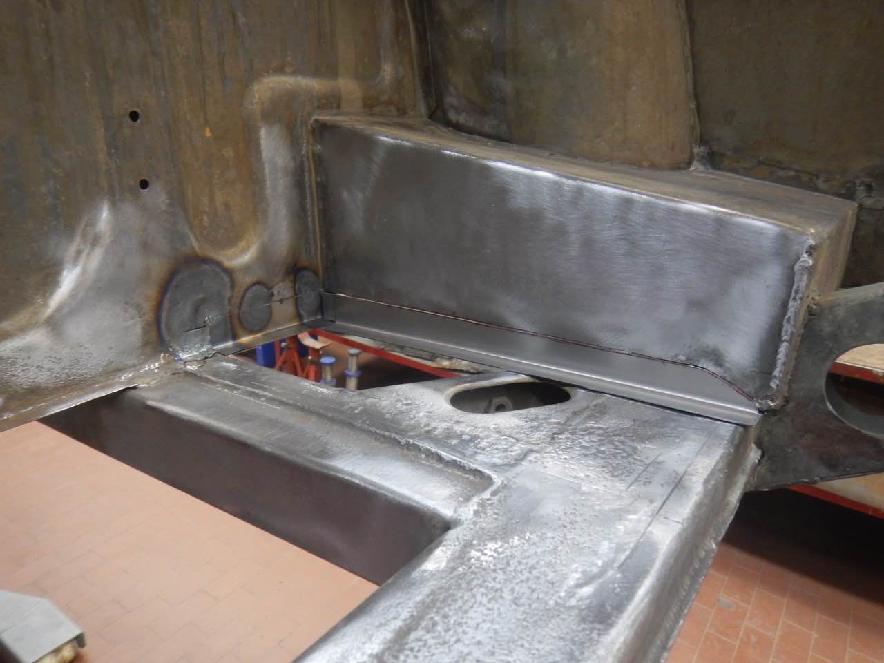 Kofferraum incl. Heckshroud wurde schon einmal angepasst. Allerdings waren die Arbeiten nicht so ausgeführt das man sie lassen könnte. Das Bodenblech hatte sehr viele Löcher und wurde deshalb komplett ersetzt.