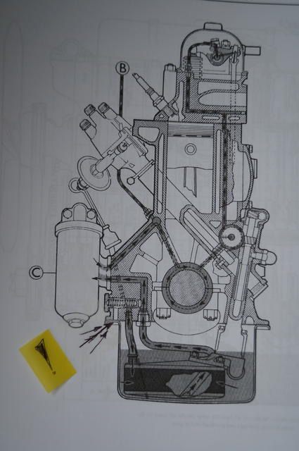 Die Abbildung zeigt den Ölkreislauf im Motor. Ich hatte das Problem, dass ich einen modernen Ölfilter verwenden wollte, diesen hatte ich vor längerer Zeit schon gekauft. Allerdings hatte ich keine Einbauanleitung mehr oder auch nie erhalten, jedenfalls gibt es auch meine Version nicht mehr. Wichtig bzw. Entscheidend ist, das der Filter richtig montiert wird, ansonsten wird kein Öl in die Ölleitung gedrückt und ein Motorschaden wäre die Folge.